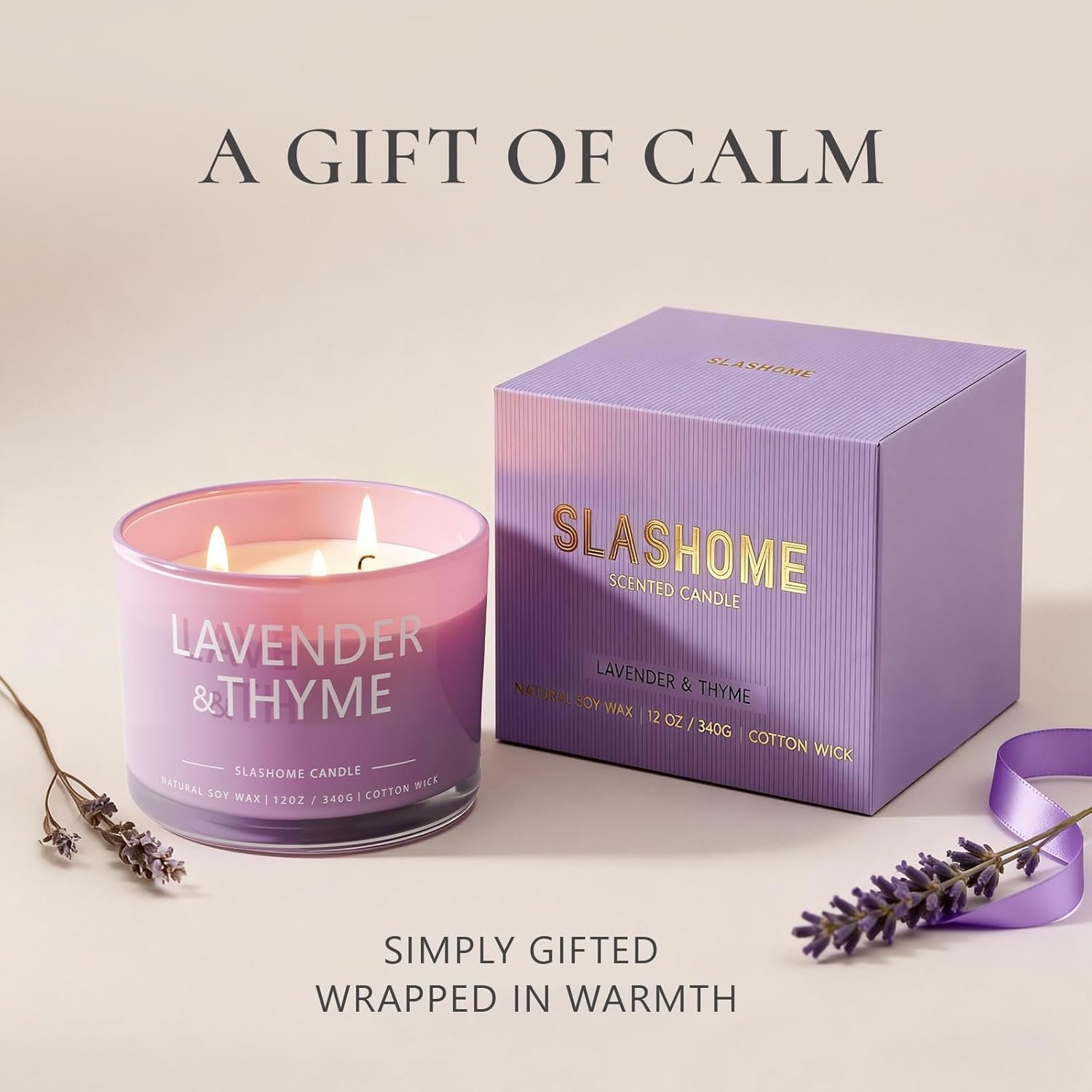 Lavender Thyme Scented Candle, Luxury Large 3 Wick Soy Candle 12 Oz, 60+ Hour Long Lasting Clean Burn, Elegant Aromatherapy Home Decor, Housewarming & Birthday Gift for Men & Women0